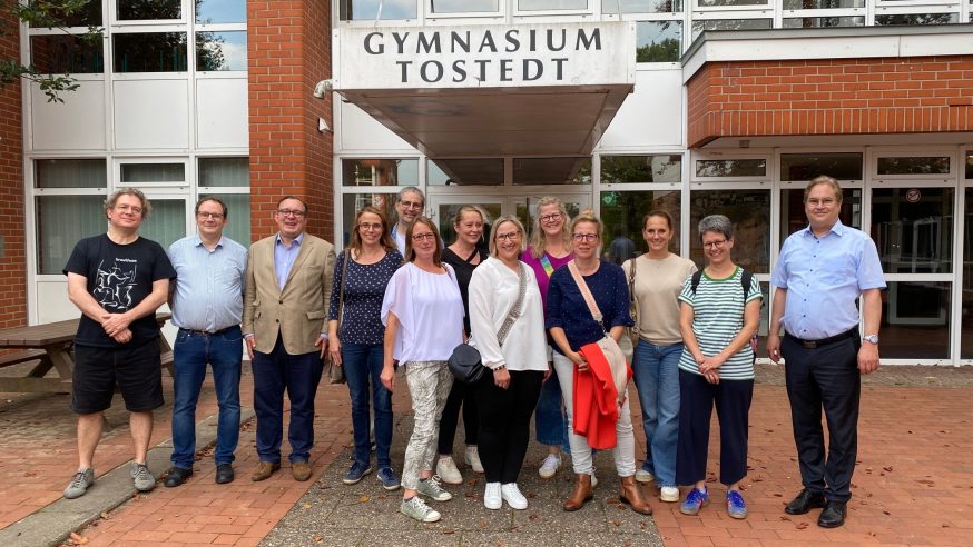 Am Samstag, den 20.09.2025 traf sich der Abiturjahrgang 1995 in Tostedt, um sein 30jähriges Jubiläum zu feiern. Für Interessierte fand am Nachmittag eine Schulführung im Gymnasium mit dem stellvertretenden Schulleiter statt. Veränderungen zu 1995 gab es einige zu entdecken. Nicht nur, dass die Ausstattung natürlich in großem Umfange modernisiert wurde (angefangen bei digitalen Boards in den Klassenräumen bis hin zu vollkommen neu gestalteten Bereichen wie der Schulbibliothek), es gab auch ganze Gebäudeteile, die 1995 noch gar nicht existierten. Zu betrachten waren dabei besonders die Aula und der neue Verwaltungstrakt, aber auch der gesamte Neubaubereich von 2001. Viele Erinnerungen und Geschichten rund um die Schulzeit wurden ausgetauscht und rundeten den Gang durch unser Gymnasium ab.