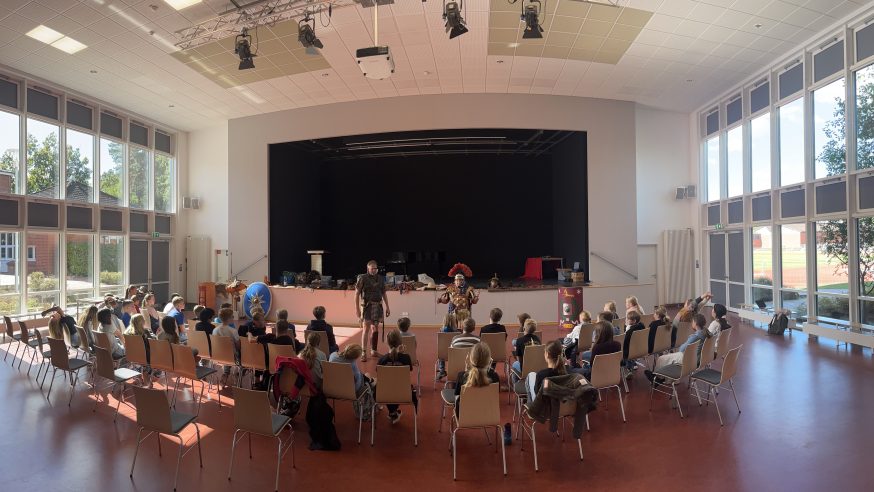 Am 24.9.2025 fand am Gymnasium Tostedt ein Römerprojekt statt. Roland Crocoll und Martin Löchel besuchten als Römer verkleidet das Gymnasium und erzählten den Schülern und Schülerinnen der 6. Klassen viele Dinge über das alte Rom.