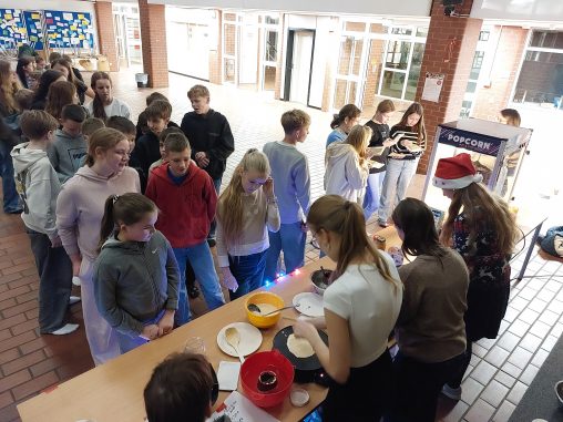 Die SchülerInnen der Oberstufe kümmerten sich nicht nur um die Auswahl des Films – geschaut wurde die Neuverfilmung „Der Grinch“ – sondern auch um die Technik, den Einlass und sogar um kleine Snacks, die das Erlebnis abrundeten.